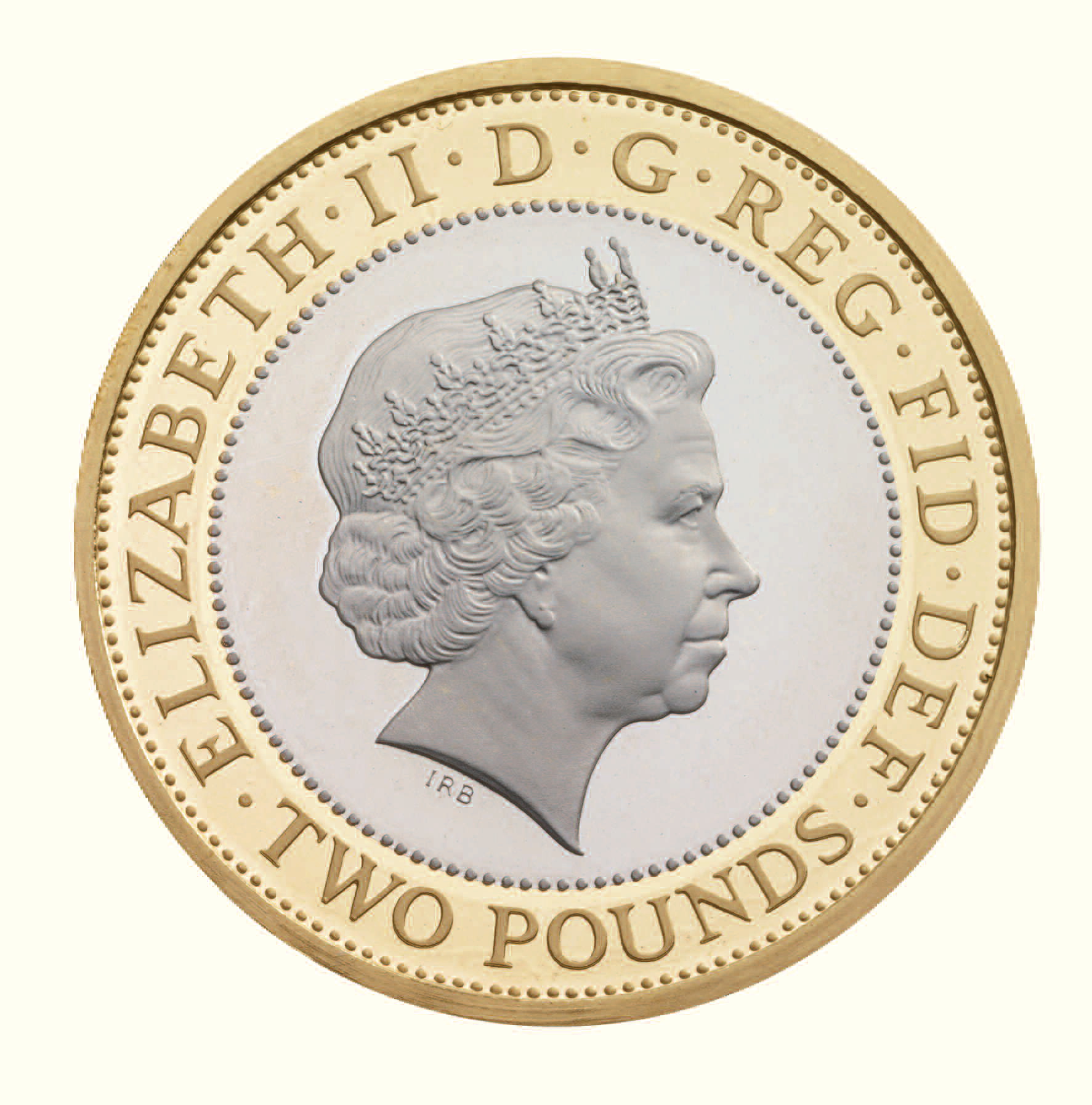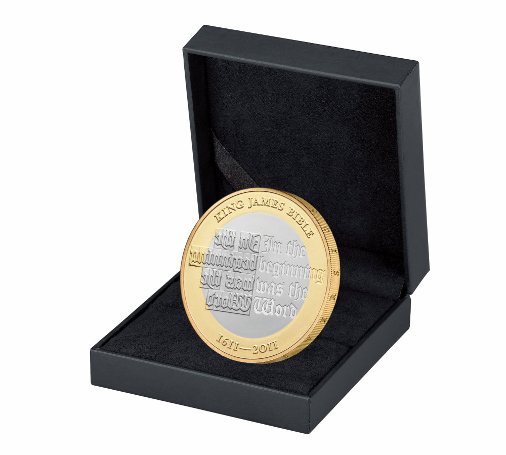 Дизайн монеты представляет первые слова Библии в печатном виде и в виде наборного клише печатного пресса.