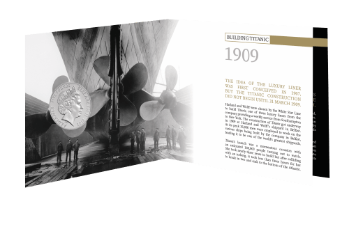 Монета из недрагоценного сплава вставлена в иллюстрированный буклет с рассказом об истории создания и трагическом первом рейсе “Титаника”. Тираж её изначально не ограничен. Качество чеканки монеты из медно-никелевого сплава “бриллиант анциркулейтед”.