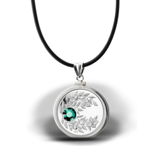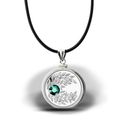 Серебряная монета, инкрустированная кристаллом с имитацией изумруда – для майских именинников. Изумруд дарят с пожеланием счастья и плодородия.