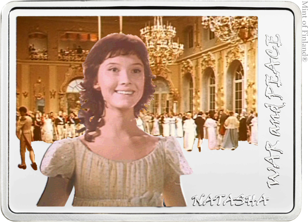 Роман «Война и мир» был экранизирован в 1968 году известным режиссером Сергеем Бондарчуком, чья интерпретация классического произведения получила «Оскар» – самую значимую кинематографическую награду в мире. На серебряных монетах Монетного двора Финляндии воссозданы кадры из киноэпопеи, знакомые каждому зрителю этой талантливой экранизации эпического произведения Льва Толстого.