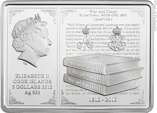 Монетный двор Финляндии в память о 200-летии войны 1812 года  выпустил три серебряные монетыВойна и Мир” с портретами  героев бессмертного романа Льва Толстого какими их создал кинорежиссёр Сергей Бондарчук в одноимённой киноэпопее.