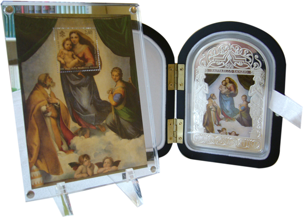 “Сикстинской мадонне” исполнилось 500 лет: килограммовая серебряная монета Андорры и марка Ватикана составили уникальный набор в честь дня рождения знаменитейшего полотна Рафаэля