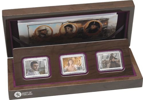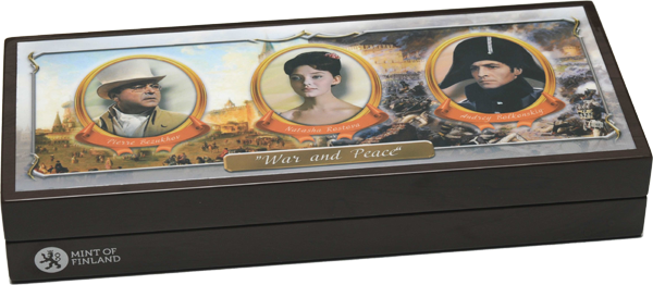 Набор серебряных монет “Война и мир” Монетный двор Финляндии создал совместно со Сберегательным банком Российской Федерации, с полным соблюдением авторских прав создателей бессмертных образов этого шедевра кинематографа.