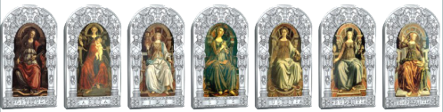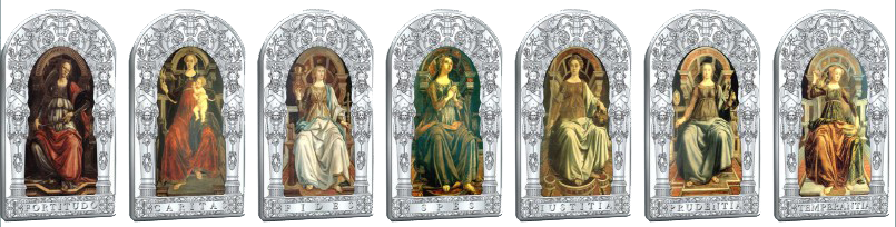 Флорентийскую галерею дель Уффици украшают “Семь христианских добродетелей“: кисти братьев дель Поллайоло – Антонио и Пьеро – принадлежат шесть из них, седьмую картину цикла создал Сандро Боттичелли. Теперь они могут украсить и Ваш дом – семь серебряных монет Княжества Андорра воплотили изысканную красоту семи основных черт характера человека: