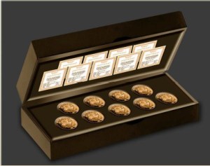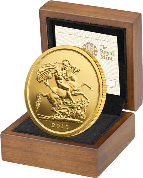 1. Святой Георгий и Дракон Королевского монетного двора (Великобритания), выпускаемая ежегодно качеством “бриллиант анциркулейтед” тиражом по 1 000 шт. с аналогичным соверенам дизайном. В 2011 году эта монета несла традиционный дизайн работы гениального Бендетто Пиструччи.