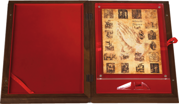 Гению Альбрехта Дюрера (1471-1528), немецкого художника, гравёра, математика и теоретика из Нюрнберга посвящена эта серебряная монета из 24 частей. Его гравюры снискали ему славу по всей Европе когда мастеру ещё не было тридцати. Дюрер был признан величайшим мастером Северного Ренессанса.