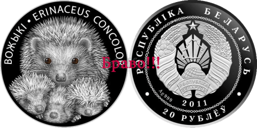 3. Ежи” Национального банка Беларуси и “Неясыть” – обе монеты отчеканены на Монетном дворе Майера