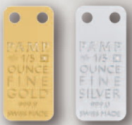 Слитки из чистого золота и серебра с размером 13х30 мм и массой 1/5 тройской унции от всемирно признанного производителя компании ПАМП (Швейцария) выполнены в наивысшем стандарте качества монетной чеканки “пруф”.