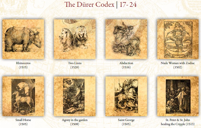 Его огромное художественное наследие включает алтарные и религиозные работы, многочисленные портреты и автопортреты, а также гравюры на меди. Около 60 картин Дюрера дополняют тысячи эскизов и акварельных набросков, около 250 гравюр по дереву и 96 гравюр на меди,  6 гравюр травлением и три, выполненные в технике “сухой иглы”. Гений Дюрера – не только в его картинах, прежде всего он мастер графики и величайший мастер ксилографии не только своего времени, но и, бесспорно, один из наиболее совершенных рисовальщиков всех времён.