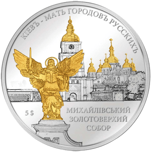 Монета с изображением ангела-хранителя седой столицы Киевской Руси и восставшего из руин Михайловского Златоверхого собора появилась на свет в 2012 году.
