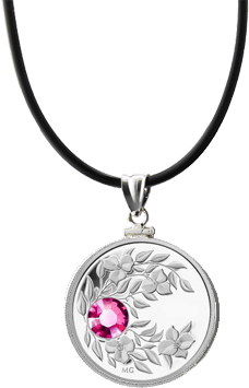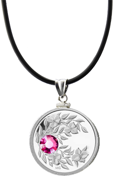 Хочется надеть эту монету как подвеску? — пожалуйста, дополнительно в бархатном мешочке с логотипом Королевского монетного двора Канады в комплекте с гламурной миниатюрной отвёрточкой есть каучуковый шнур со специальной серебряной рамочкой для вставки монеты.