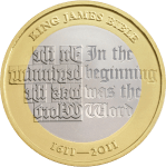 6. Великобритания – 2 фунта, биметалл, медно-никелевый и никелево-латунный сплавы, “Библия Короля Якова”