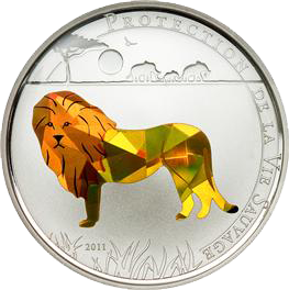 10. Того– 100 франков, серебро, “Лев” с цветным призматическим эффектом