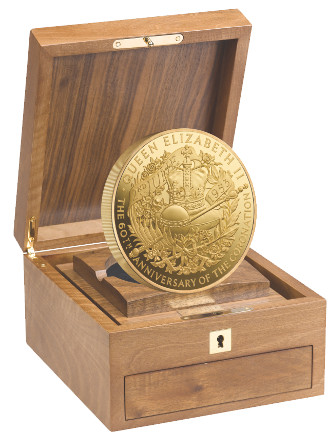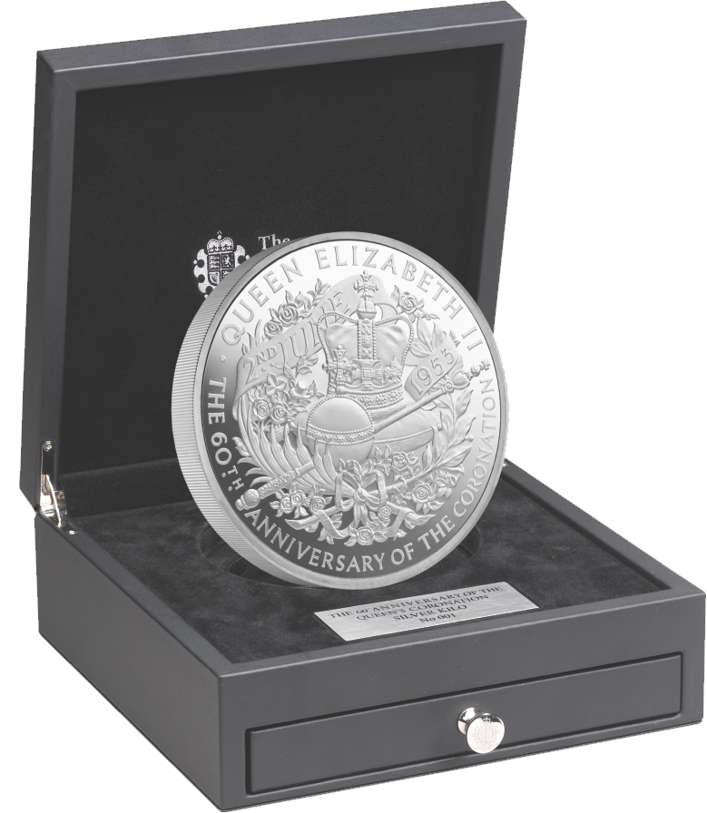 Не более 27 золотых и 400 серебряных килограммовых монет в честь 60-летия коронации Её Величества будет отчеканено в качестве “пруф” Королевским монетным двором. Номерные футляры и сертификаты подлинности подчёркивают особый статус этих монет. Лишь 250 серебряных монет будут выпущены в этой особой комплектации. Тираж золотых монет соответствует возрасту, в котором короновали Елизавету II. Тираж серебряных монет соответствует количеству лет, прошедших между коронациями Елизаветы II и Королевы Мэри, первой королевы Англии.
