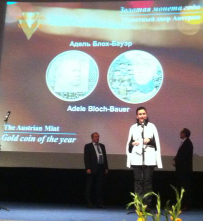 Объявить Золотую монету года в этот раз выпала честь мне. Чеканные портреты Густава Климта и его модели со знаменитой картины “Портрет Адели Блох-Бауэр I”, созданные Монетным двором Австрии, международное жюри признало достойными первой награды в этой номинации.