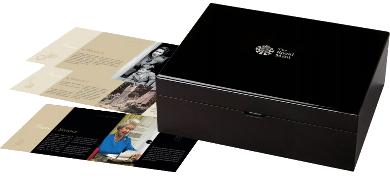 Футляр белого цвета оформлен в единой стилистике с монетой.