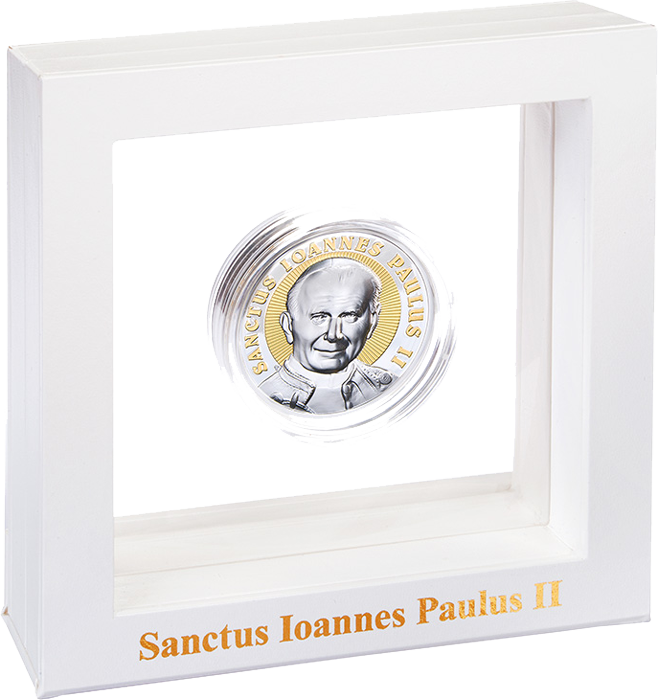 4. Монета-триптих в честь канонизации Иоанна Павла II отчеканена в двух версиях — серебряная и с покрытием 24-каратным золотом по серебру.
