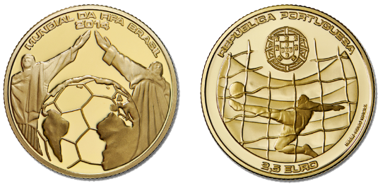 Portugal-Gold-Coin-FIFA-2014Особенное место в коллекции официальных монет Чемпионата FIFA 2014 года занимают золотые монеты Основных футбольных наций (Major Football Nations):Золотые монеты самых футбольных стран