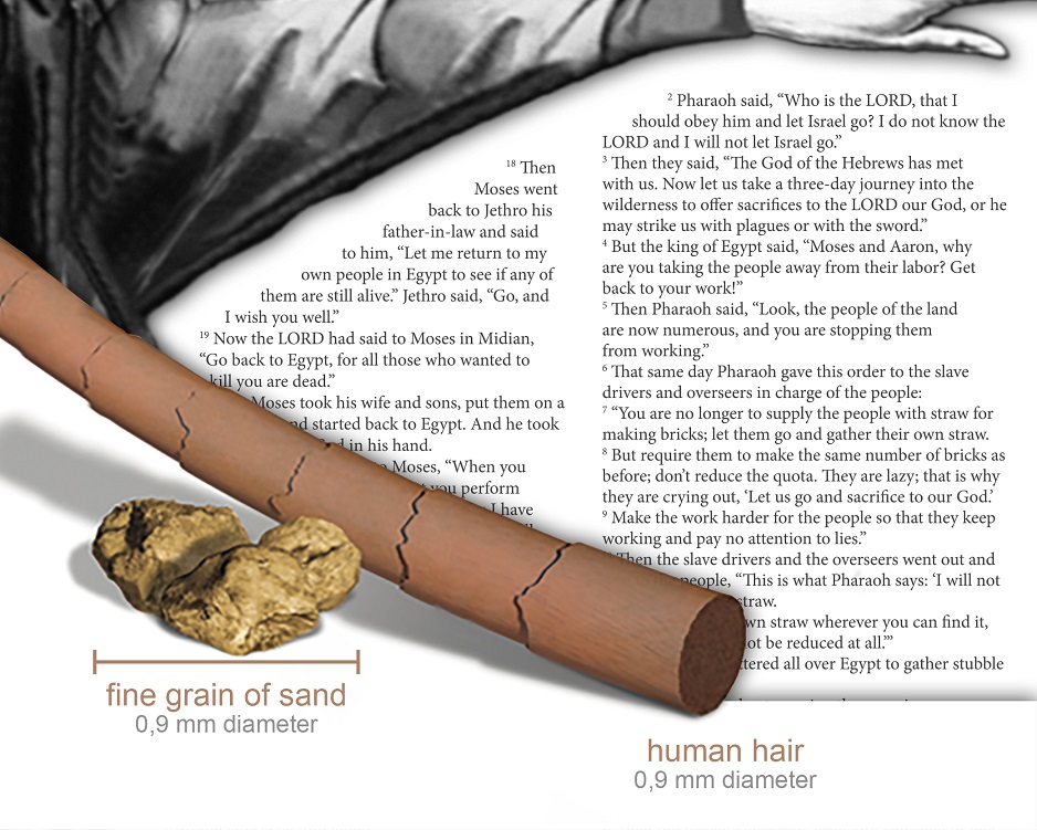 Книга “Исход” (“Вторая Книга Моисея”) рассказывает священную историю ухода еврейского народа из Египта. Наночип этой серебряной монеты содержит фрагмент Библии: текст глав от 4:18 до 5:21 книги “Исход” (англ. Exodus 4:18 to Exodus 5:21) на английском языке.