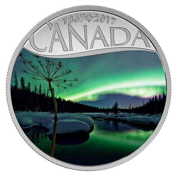 Celebrating CanadaS 150 th Ann – Aurora Borealis at McIntyre Creek Silver Coin_