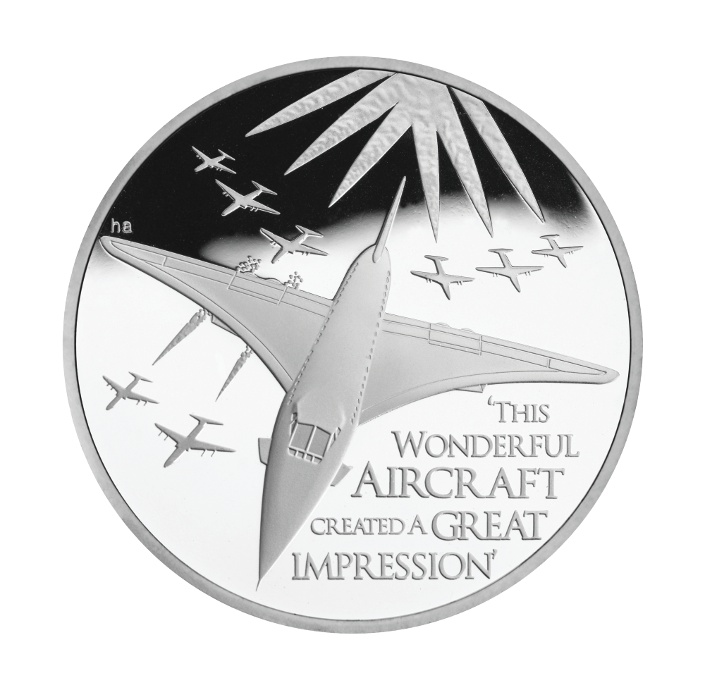Как и остальные монеты этой серии, реверс этой монеты также цитирует Елизавету II – на нём начертаны слова, которые произнесла Королева после полёта на “Конкорде” в мае 1991 года: “Этот прекрасный самолёт производит потрясающее впечатление“.