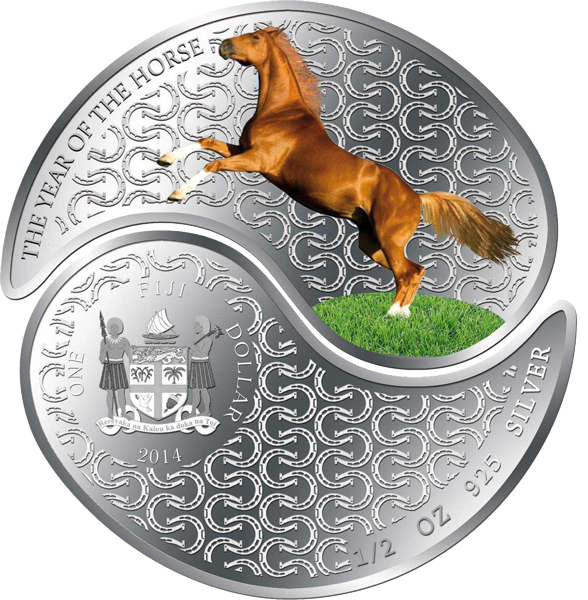 Тему единства противоположностей Инь-Янь на монетах с символом года по Лунному календарю продолжил Монетный двор Норвегии, подхвативший от Монетного двора Финляндии эстафету выпуска набора из двух серебряных монет для эмитента Фиджи — необычная форма каждой из монет позволяет в их объединении получить круг, символ совершенства. Набор 2 серебряные монеты “Инь Янь. Год Коня” стал четвёртым в успешной серии, стартовавшей четыре года назад монетами к Году Тигра.