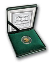 На крышке деревянного футляра к этой монете золотом нанесено изображение папского герба и надпись на польском языке “Святой среди святых“.