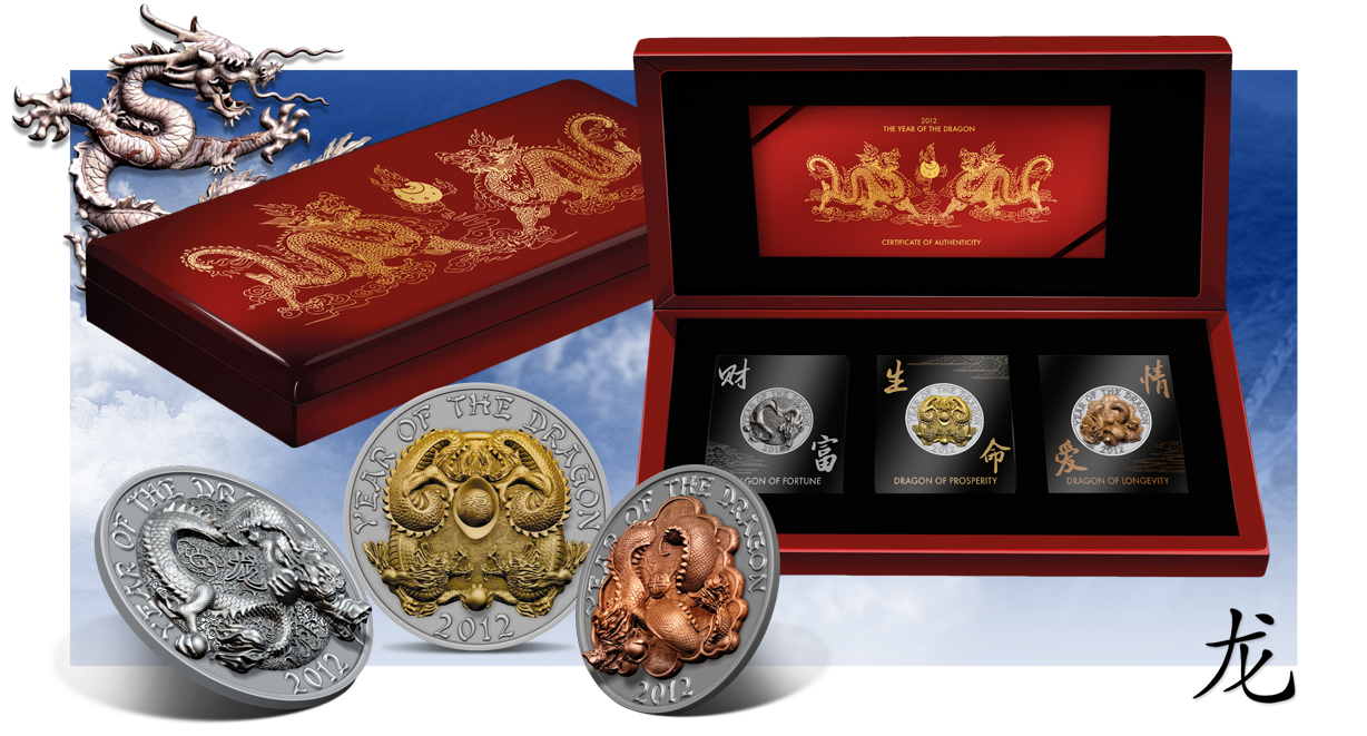 Дракон – популярнейший из всех зодиакальных символов в Китае, поэтому большинство выпущенных к Году Дракона монет было продано на внутреннем рынке. Ценители монетного искусства за пределами Китая могут рассчитывать на очень незначительное количество монет. Охота за китайскими монетами к Году Дракона началась! 🙂