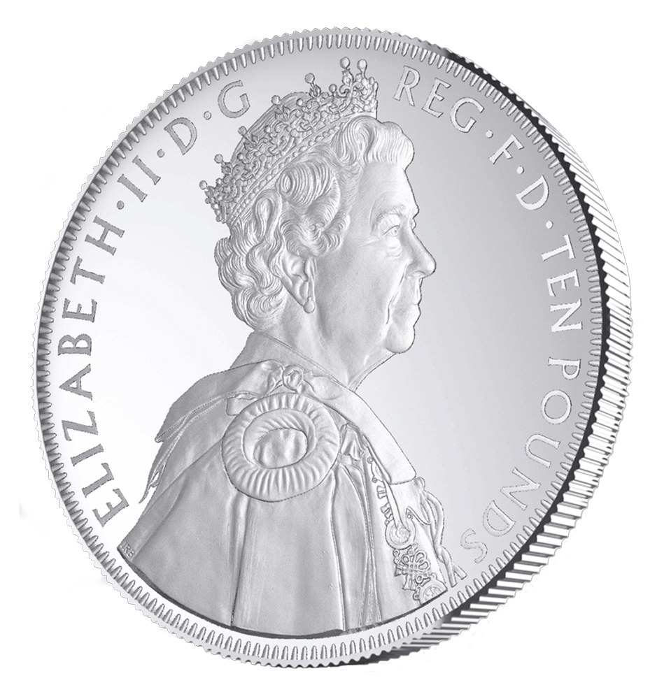 - монеты номиналом 5 фунтов стерлингов: золотые и серебряные монеты, серебряные и платиновые пидфорты — все в наивысшем качестве “пруф” и, конечно, в презентационных футлярах, а также монеты из медно-никелевого сплава в иллюстрированной открытке.