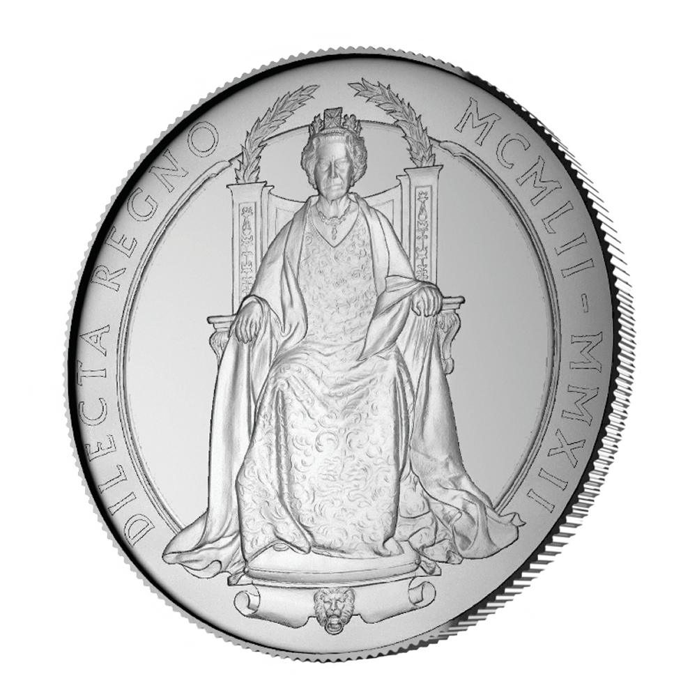 Британский Королевский монетный двор Royal Mint выбрал дизайн, состоящий из девяти роз — по одной за каждое десятилетие жизни монарха:
