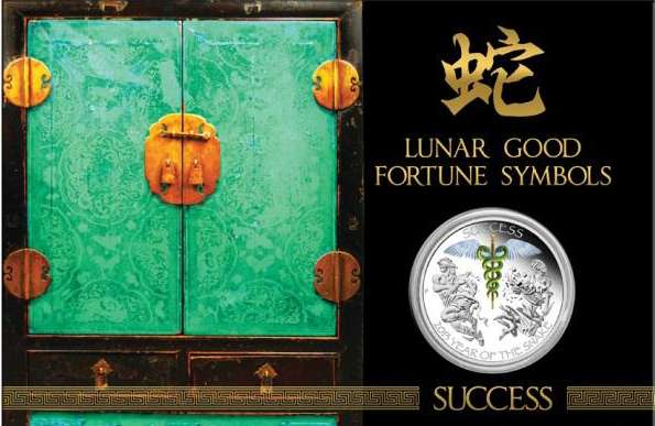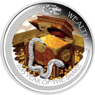 на монете “Богатство” змея выползает из сундука, полного золотых монет. Эти сокровища символизируют процветание и изобилие, которые принесёт Змея – символ 2013 года в ваш дом.