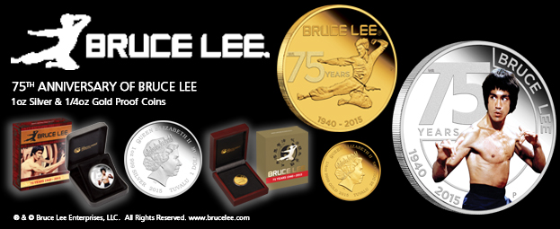 Монетный двор г.Перт из Австралии получил эксклюзивное право на чеканку изображения и подписи знаменитого актёра, мастерски владевшего боевыми искусствами. Педагог, философ, режиссёр — многогранный талант Брюса Ли стал известен всему миру благодаря успеху снятым в Гонконге в начале 1970-х фильмам с его участием. Брюс Ли открыл боевые искусства для широкой публики в Соединённых Штатах, а также в Европе.