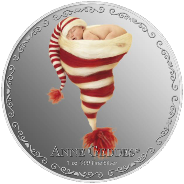Малыш, сердечко моё, добро пожаловать в наш мир! Тебя ждёт счастливая судьба, щедрая на добрых людей и великолепные открытия, яркие впечатления и удивительные встречи! А пока ты растёшь, этот уютный полосатый колпак-колыбельку из мериносовой шерсти тебе подарила знаменитая фотохудожница Энн Геддес. Этот симпатичный сюжет серебряной монеты “Сердечко моё”, отчеканенной Монетным двором Новой Зеландии, выбран для декабрьской страницы в одноименном настенном фотокалендаре Энн Геддес на 2014 год.